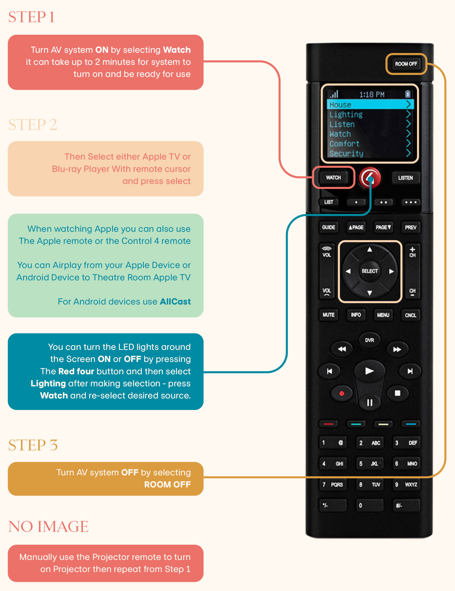66 cullen bay cres – theatre rooms instructions